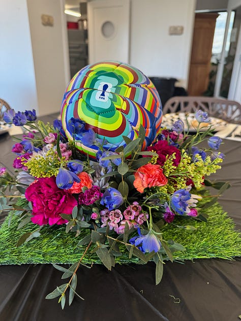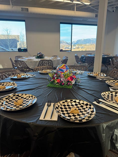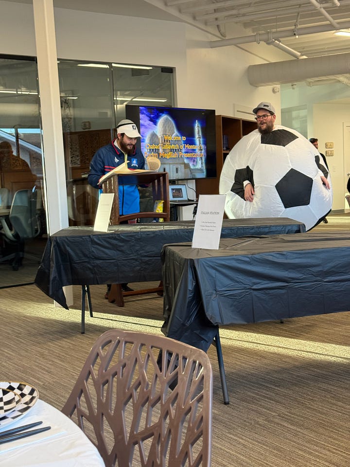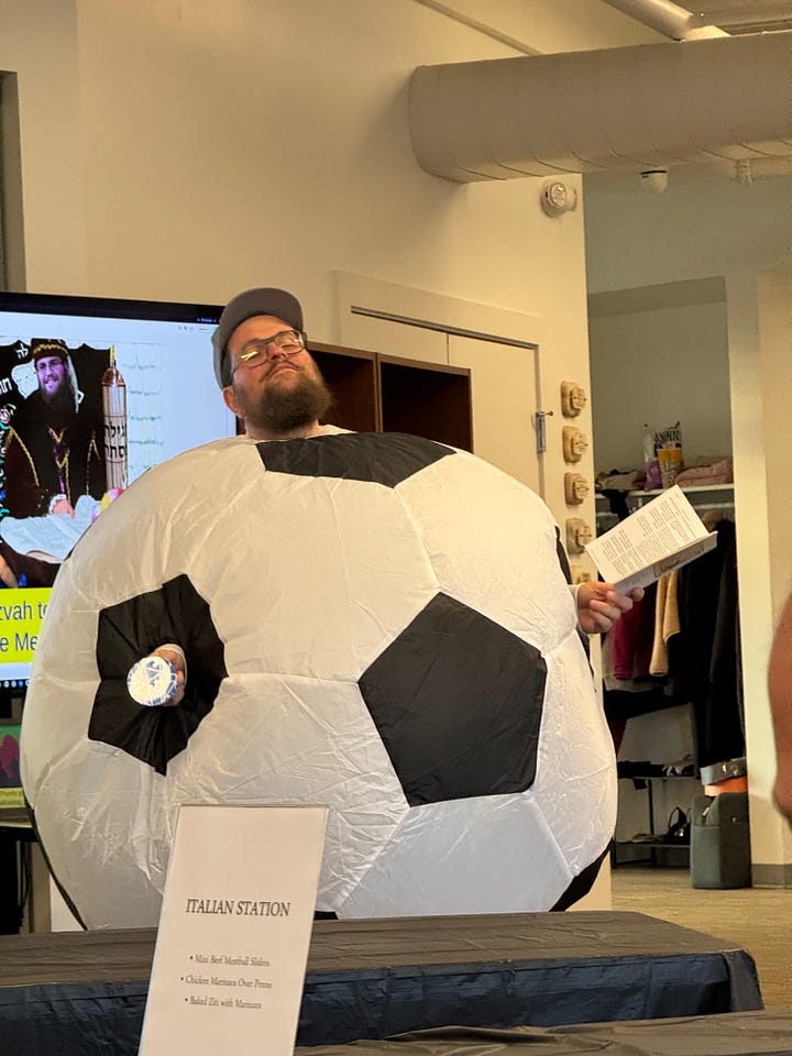 When we first moved to Bozeman, nineteen years ago, we didn’t need any themes, Purim was novel enough. But a few years in we started to do themes and it’s actually a lot of fun and really helps shape the party. This year’s theme was Purim in the World Cup (which made Menny very happy) and it was so fun. We had food from three different countries (Italy, Brazil, and France), an open bar, music, mask making, and a magic show.